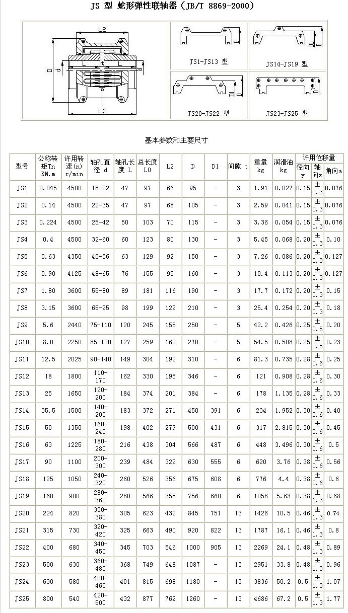 JS型蛇型彈簧聯(lián)軸器
